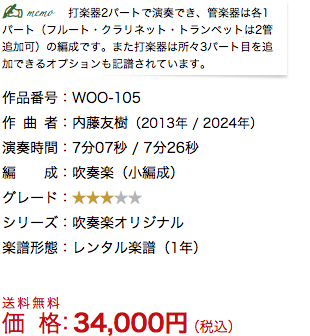 ■ 本作品には『ソリストⅠ(Gr.3.5)』・『小編成版Ⅰ』・『小編成版Ⅱ』・『小編成版Ⅲ』・『小編成版Ⅳ』・『小編成版Ⅴ』・『小編成版Ⅵ』・『小編成版Ⅶ』・『原曲』・『改訂版』・『完全版(原曲+改訂版)』・『全11バージョン』があります。