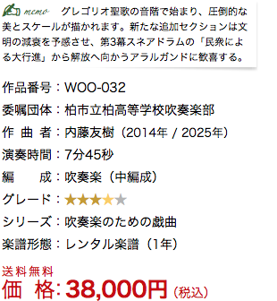 ■ 本作品には『原曲(中編成)』・『小編成版(小編成 / 打楽器3パート)』・『コラージュ(小編成 / 打楽器4パート)』があります。