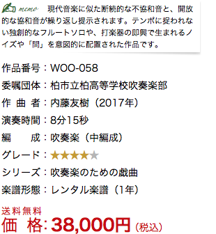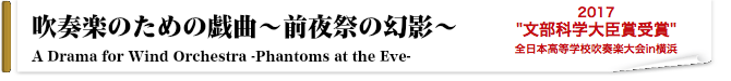 ホーム > レンタル楽譜一覧 > 吹奏楽のための戯曲Ⓢ > 吹奏楽のための戯曲〜前夜祭の幻影〜 / A Drama for Wind Orchestra -Phantoms at the Eve-