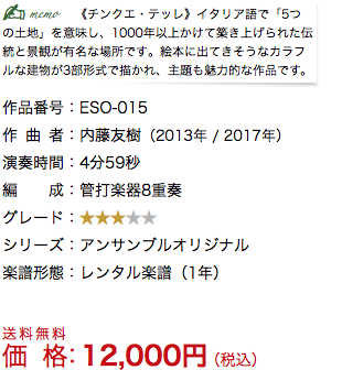 ■ 本作品には『管打楽器8重奏版(チンクエ・テッレ)』・『吹奏楽版(ピケのバラード)』があります。