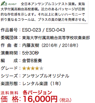 ホーム > レンタル楽譜一覧> アンサンブルオリジナルⓈ > ブレージング・ブリーズ(金管八重奏版) / Brazing Breeze