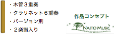 ■ 本作品には『木管5重奏版(2バージョン)』・『木管8重奏版(37バージョン)』・『管弦8重奏版(10バージョン)』・『管楽8重奏版(2バージョン)』・『管打楽器8重奏版(6バージョン)』・『管弦打楽器8重奏版(2バージョン)』・『全59バージョン』の編成があります。