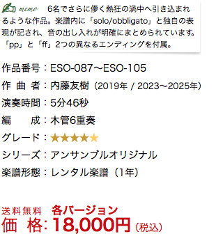 ■ 本作品には『木管8重奏版(7バージョン)』・『木管6重奏版(3バージョン)』・『全10バージョン』の編成があります。